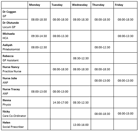 The surgery is closed on all weekends and bank holidays.